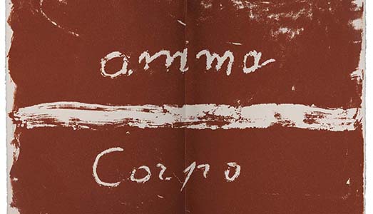 La mostra dai contenuti rilevanti, riflessivi, ed evocativi si apre con dodici “terragraph” dal libro d’artista “The Gospel according to Thomas”. Simboli carichi di significato spirituale ai quali Gesù e Tommaso erano strettamente legati si dispiegano su matrice cartacea e sabbia rossa, quasi a rappresentare il valore immateriale della spiritualità e contemporaneamente la sua concretezza nello spazio e nel tempo in cui si manifesta, nei gesti e nelle cose animate e tutto ciò che amabilmente “tocca”. Immagini e parole, in un continuo gioco di alternanza tra immanenza e trascendenza che solo il genio artistico di Kounellis poteva coniugare in maniera così magistrale.