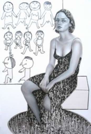 L’universo femminile è scrutato anche da Simona Bramati (Jesi, 1975). Le sue donne si lavano, lasciandosi guardare. Il bagno diventa un momento catartico, intimo e riconciliante. Il gesto quotidiano acquista un nuovo significato, esprime una rinascita, serena o sofferta, carica di tensione e solitudine. Le sue figure si immergono nell’acqua, elemento vitale per eccellenza, femmineo e docile. Simona si ispira all’espressionismo tedesco, dove ogni pennellata e ogni segno si accendono di un forte simbolismo, ma guarda anche al Rinascimento. Le sue figure sono costruite con rigore, come quelle diPierluigi Febbraio (Roma, 1976). Quest’ultimo ricorda Klimt, per il realismo fotografico dei suoi soggetti. Un “Klimt” che si è nutrito di Freud e delle teorie psicoanalitiche.