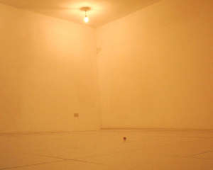 Slitta leggermente il pavimento, si scolla nei punti dove di solito si innestano i muri, cede mentre il suo unico, (i visitatori entrano uno alla volta ha scritto l’artista e lo ribadisce anche Cloe Piccoli, curatrice della mostra, nel testo introduttivo) provvisorio abitante muove i primi passi in un luogo dove niente può essere occultato, perché effettivamente non c’è nulla oltre quel bianco totale che rende impercettibili i confini e il disegno instabile formato da poche noci, come punti di una traiettoria destinata – seguendo gli assestamenti del piano inclinato – ad un progressivo, ma lentissimo modificarsi.