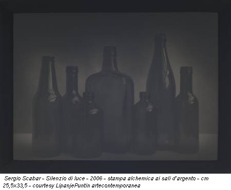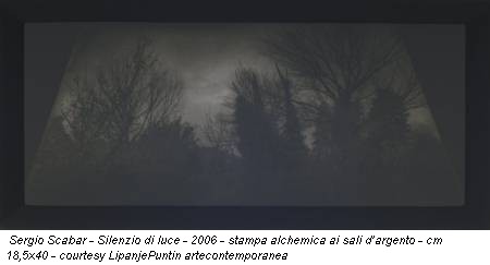 La fotografia è etimologicamente “scrittura con la luce”. La stessa luce che dalle opere di Sergio Scabar (Ronchi dei Legionari, 1946) sembra essere sparita. Tace, per riprendere il titolo della mostra e di tutte le opere: Silenzio di luce, appunto. La manipolazione dell’elemento luminoso, la gestione diretta e “manuale” del procedimento di stampa divengono parte integrante di un modus operandi sperimentale tipico del fotografo friulano.