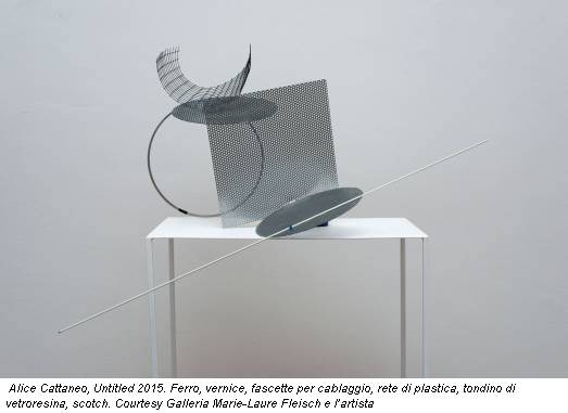 Alice Cattaneo (Milano, 1976; vive e lavora a Milano) espone per la prima volta alla Galleria Marie-Laure Fleisch, portando con sé la capacità di dialogare con gli spazi ospitanti e trasformarli attraverso i suoi lavori. Le sue sculture sono formate da geometrie legate tra loro in un equilibrio precario, tramite scotch o fascette per cablaggio: reti di ferro, vetroresina, fogli di acetato, bastoncini di legno sono modellati e uniti in un gioco di spinte e controspinte. Sono cariche di gesti che vogliono suggerire paesaggi, che ancora devono avvenire: la semplicità delle linee sostiene con grazia il peso dell’attesa, la tensione del divenire.