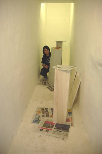 Proprio a Trastevere, il quartiere capitolino delle pareti crepate, dai numerosi angoli dimenticati e uno dei più frequentati della Capitale, l’artista ricostruisce una città immaginaria, un paesaggio urbano, malinconico e artificiale, a scala ridotta. Dopo le mostre di Carla Accardi, Bruna Esposito, Annie Ratti e Micol Assaël, in quest’occasione lo spazio viene occupato da tre asettici piedistalli di altezza crescente che si susseguono serpeggiando. Tre piazze di colori metallici e forme sterili, troppo anonime per essere riconosciute e troppo fredde per essere vissute, su cui sono disposti piccoli oggetti d’uso quotidiano – utilizzati frequentemente nei lavori dell’artista milanese – affiancati da noccioline, gusci di pistacchi, semi di avocado e pillole.