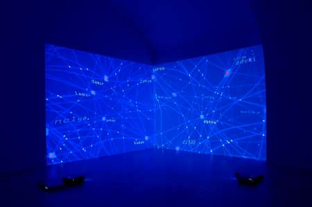 La complessità di queste relazioni, insieme all’intreccio chiasmico di corpo e mente, si configura come una fonte di ispirazione costante per Bianco-Valente, impegnati da anni nella ricerca di un equilibrio tra visione emozionale e passione intellettuale, oltre che in una stimolante riflessione sul rapporto tra natura, scienza ed artificio tecnologico. Se in Volatile (2002), avevano trasformato dei pixel in un armonioso stormo di uccelli, e in Machine is Dreaming (2002) generato con un computer il riflusso delle onde del mare, con Relational Domain rappresentano una rete neuronale incantevole come un firmamento stellato.