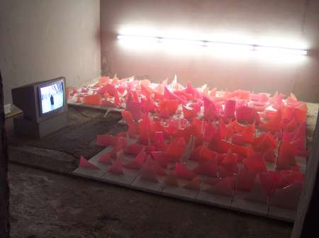 In generale l’installazione sembra radiografare catastrofi distruttive, e propone l’urgenza di un’immagine in violento scontro con la dimensione individuale. La città destrutturata non può essere pietra inanimata o tautologico non-luogo; altrimenti il rischio è per gli artisti stessi, costretti a lavorare su significati che con sempre maggior fatica donano la possibilità di un discorso.