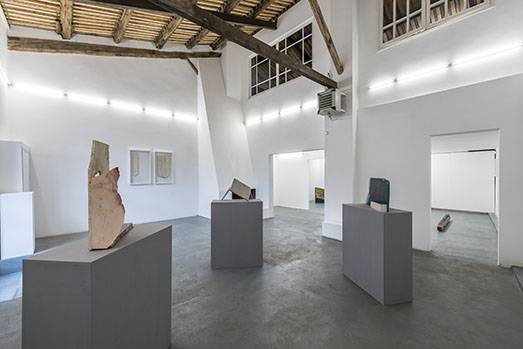 Sculture estrosamente composte sono adagiate su piedistalli ammirabili a tutto tondo, godendo di ogni singolo particolare. Una ricerca artistica completamente nuova dove tutti i materiali selezionati sono stati utilizzati nella loro intrinseca essenza. Le pietre, stabili e durevoli, si mostrano fiere nelle loro composizioni, a volte spigolose, a volte occlusive, a volte apparentemente instabili. Una materialità prepotente che si interpone allo sguardo solo per fargli capire che c’è molto di più oltre quella soglia, ci sono scenari da scoprire e far propri con l’esperienza. Le fratture, causate a seguito di reazioni di forte stress sulle superfici, sono accentuate dalle cromie audaci di cui si rivestono. Colori che scuotono e dinamizzano anche quadri dal pallido candore marmoreo. Crepe che si contrappongono alla linearità del taglio del marmo, dell’ardesia e del travertino.