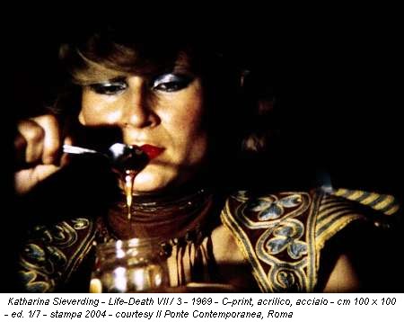 Nella sequenza Die Sonne um mitternacht schauen X/VI (Guardando il Sole a mezzanotte, 1988), il viso dell’artista ricoperto di polvere d’oro e con eruzioni solari può ricondurre all’athanor, “l’alto forno cosmico” (Rudolf Schmitz) dove avvengono le trasmutazioni della materia alchemica. Nella serie Life-Death si distingue il ritratto VII/3. Qui l’artista, rifuggendo il rapporto visivo diretto con lo spettatore, contempla la propria immagine riflessa su un cucchiaio. Allusione alla fase lacaniana dello specchio, può suggerire la presa di coscienza dell’identità che, per formare il sé, subisce una lacerante quanto inevitabile separazione.