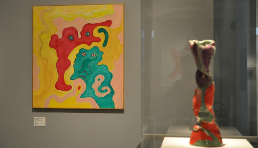 È una mostra singolare quella curata da Achille Bonito Oliva, ma organizzata da Fulvio Caldarelli, vero conoscitore dell’opera dorflesiana, sul lavoro pittorico dell’artista e critico triestino: procede a ritroso, ovvero dagli anni più recenti – che occupano la maggior parte delle sale – sino ai primordi degli anni Trenta, con poche brevi parentesi sulle belle opere di ceramica e di gioielleria.