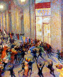 L’utopia del progresso in cui confluiscono la “rivolta simbolista“, il “socialismo divisionista” e i “futuri futuristi“(sala centrale). Qui si nota come l’arte si schiera e rappresenta ciò che succede, è testimone del periodo dell’emigrazione e delle prime lotte socialiste come faceva già da tempo la letteratura. C’è anche l’opera di G. Balla “Lampada ad arco” (proveniente dal New York Museum of Modern Art), e “Fiumana ” di G.Pellizza da Volpedo, due opere molto grandi e rappresentative.
