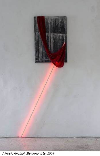 ‹‹No, non ti sbagli. L’opera è proprio la memoria dell’incontro che è avvenuto tra luce e materia. Guardando l’opera, mi è stato detto che il colore della luce che attiva la retina alla nascita è il rosso ed è in effetti quello che volevo rappresentare, questa memoria primordiale. La linea di luce in questa opera è evocata, c’è la sua immagine e al tempo stesso ci sono altre linee, nuove, che nascono dopo, fili tesi e segni di grafite che formano una geometria inventata che cambia e si “muove a seconda del punto di vista da cui la si osserva” ››.