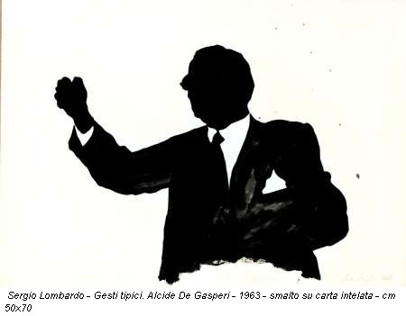 Nello scambio -certo silenzioso- di battute sembra di assistere all’ennesimo talk show televisivo, impressione che sottrae questi personaggi alla loro dimensione storica. Non a caso, è proprio l’impatto della cultura massmediatica a “ispirare” i Gesti tipici: il momento in cui le persone diventano personaggi e la riconoscibilità è dettata più dallo status che non dalle singole individualità. La denominazione di Pop, con cui si è voluta identificare l’opera di Lombardo e quella di altri protagonisti della Scuola di Piazza del Popolo, sta nell’attenzione rivolta ai meccanismi pubblicitari. Ma, come dice Lombardo, “mentre gli artisti americani erano attratti dai supermercati, per noi era più interessante la figura umana”.