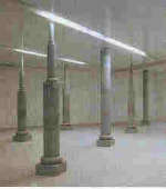 L’elaborazione artistica si pone come misura aurea dello spazio architettonico in un gioco di scomposizioni e rimandi. La colonna è costituita da elementi sovrapposti, ciascuno sezione aurea di quello inferiore, ogni colonna trae senso dal confronto con un’altra colonna, l’insieme deve essere sempre equilibrato: se le dimensioni delle colonne diminuiscono se ne aumenta il numero. Lo spazio le ospita armoniosamente e le linee metalliche tracciate dall’architetto sul pavimento invitano alla deambulazione, un percorso casuale attraverso l’opera.
