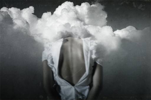 Una serie di autoscatti la rivelano in tutta la sua inquietudine. Con il volto semiricurvo, quasi a nascondere lo sguardo, Veron torna a indagare il mezzo fotografico, passando dall’analogico al digitale: stringe con una forza immaginaria le nuvole che la circondano, fumo nevrotico inconsistente, come nevrotico è il suo apparire dietro le schermo, mentre il paesaggio attorno si fa grigiastro e si dipinge di antico: un non-luogo.