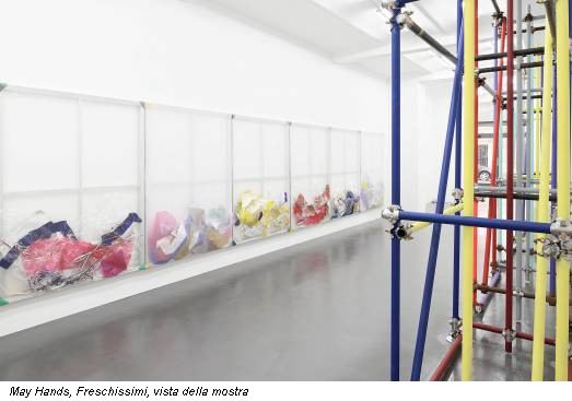 In occasione della sua prima personale italiana, May Hands si presenta al pubblico con il progetto “Freschissimi”, un perfetto incontro fra lavori precedentemente realizzati e manufatti site-specific nati durante il periodo di residenza che ha visto l’artista incontrare – e conoscere – la Capitale, una Roma dai mille contrasti e ossimori, quella delle affascinanti e spettacolari vestigia del passato da una parte, della scarsa pulizia e dell’aumentare dei rifiuti dall’altra.