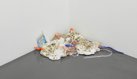 I colori fluorescenti degli oggetti che lo spettatore è abituato a incontrare alla propria vista ogni giorno nelle vetrine dei negozi diventano le tinte delle strutture portanti di un’impalcatura di ‘lavori in corso’, che nasconde in sezione tesori inaspettati dei London Street Objects. Involucri di carta, normalmente abbandonati a terra, si tramutano in composizioni tridimensionali su telaio, nelle quali plastiche e ceramiche creano un involucro attorno a quei rifiuti senza nome che assurgono a contemporanei paesaggi su telaio, dalle moderne vette montuose e metallici corsi d’acqua (Pasticceria Yellow and Violet, Cherries, Blue, Red and Yellow, Grapes and Cherries). Nell’ultima sala, l’artista presenta un’installazione fatta di Bucket, quei secchi lasciati incustoditi dagli imbianchini nei locali di un cantiere, in preda all’incedere goffo dei passanti. Come bouquet contemporanei privati del proprio profumo, strati sottili e spessori, forme e colori diversi si uniscono compatti sotto il peso di una grande colata di cemento.