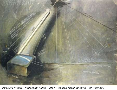 L’artista trae ispirazione dalle infinite varianti dell’acqua, elemento riflettente per eccellenza e dunque ricco di fascino. Luce e acqua si presentano come “mezzi continui aventi proprietà ottiche differenti”, offrendo la possibilità di una “riflessione sul riflettente”, come afferma lo stesso Plessi. Il progetto per Reflecting Water (1981) è una grande tela, dove linee bianche disegnano le oscillazioni del neon-pendolo. Il monitor funge da specchio acquatico, in una sintesi di tecnologia e natura che rivela l’interesse primario di Plessi: dissimulare l’elemento tecnologico, presentandolo in forme sempre diverse. Conferendogli così nuova vita.