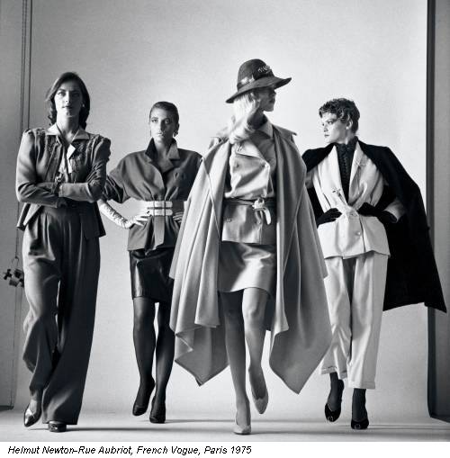 Una mano in tasca, l’altra a dondolare una sigaretta, giacca aperta a mostrare il fianco, capelli raccolti. Sullo sfondo, una città notturna. In primo piano, un gessato stile gangster, che ricorda albe alcoliche di proibizionismi aggirati, e le curve nascoste di una femminilità taciuta. Amante della femmina, nella potenza e perfino possanza della sua estetica, Helmut Newton, nei suoi scatti, offre un puntuale ritratto della donna nella nuova percezione sociale dell’Occidente. Spogliando la modella dell’abito che invece dovrebbe coprirla, Newton mette a nudo un genere, accendendo riflettori da set nelle case della borghesia per chiedere alle ombre da salotto di scendere in strada. Libere e piene.