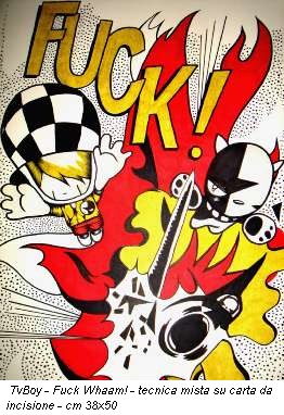 I colori forti di una pubblicità aggressiva e da fumetto è ciò che lascia il segno di TvBoy, reduce dagli interventi in terra catalana, nella composta Barcellona. Dalle lattine urla un fumetto cattivo, Super Pop Soup, il colore spesso fuoriesce dal perimetro stabilito, invade la parete. Si esalta il punto esclamativo, segno d’interpunzione dello stupore e dell’enfasi che arriva dritto dal lessico delle chat e degli sms. Dalla banlieue parigina spunta allegro SupaKitch coi suoi SupAnimal, curati e definiti, intrisi di manga e cartoon giapponesi. Alla Dorothy Circus, le croci sono i suoi morfi ricorrenti: SupaDeath e SupaChrist.