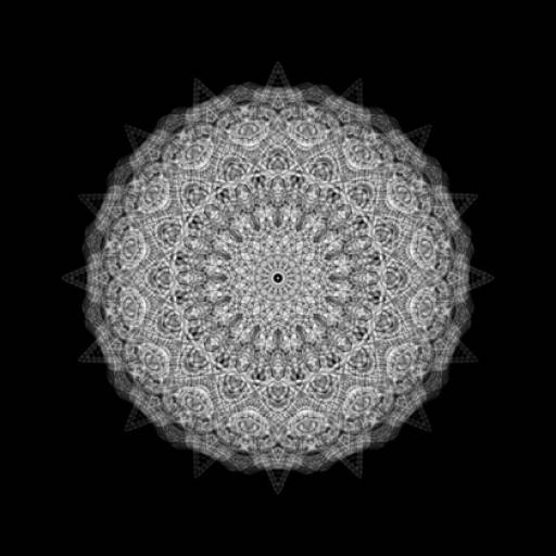 Dall’Anima Urbis il cammino porta alla serie delle opere in bianco e nero Iter perfectionis (2007). Qui, con un movimento di rotazione delle forme elaborate precedentemente, si arriva all’apice della ricerca. Ruotare è sbocciare. Lo sviluppo della manifestazione del Divino si compie. L’opera appare come una ruota, la ruota cosmica. Un insieme di creato e creatore, cerchio esterno e punto centrale. Questo cammino verso la manifestazione si traduce anche in un video. Nulla è affidato al caso: la musica è quella dei sufi, danzata dai dervisci in una ruota continua. L’ultimo fotogramma è l’ennesima variante: l’occhio, la divina onnipresenza.