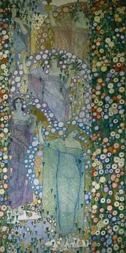 Di un sapore orientale e quasi bizantino con tutta la modernità del disegno e della linea liberty, il ciclo viene realizzato da Chini reduce da Bangkok, dove aveva soggiornato dal 1911 al 1914 impegnato a decorare la Sala del Trono del re del Siam. Ed una memoria di gusto orientale quella che Chini trasfonde e sublima in questi pannelli reinterpretando l’estetizzante fulgore del mosaico con una modernità che lo accosta alle contemporanee arti della secessione viennese, prima tra tutti quella di Gustav Kilmt (Vienna 1862-1918), alla cui celebre Nuda Veritas, in base ai cartoni preparatori di questi lavori, sembra l’artista si sia ispirato.