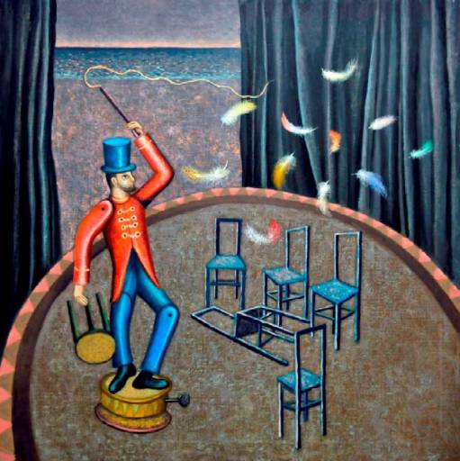 persino dal Domatore di piume, non un uomo ma un carillon che agita una corda.