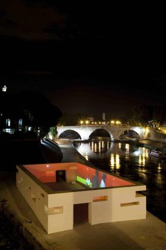 di Enel Contemporanea sorge sulla prua dell’Isola Tiberina, con una costruzione a cielo