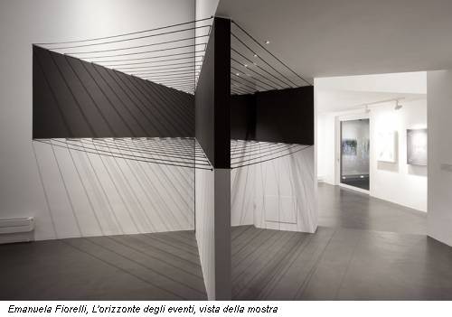 Artista, filatrice, novella Penelope, Fiorelli costruisce la trama dell'orizzonte attraverso fili elastici e serigrafie murali. Ed invade lo spazio della galleria -