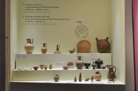 Ecco che riacquistano vita le statue raffiguranti dei ed eroi, le lastre di terracotta con processioni e corse di cavalieri, i rilievi con felini appartenenti alle coperture e alle decorazioni policrome dei tetti e di altri elementi strutturali di edifici sacri in legno dell’area di Sant’Omobono e di quella lungo le pendici della Velia e del Palatino. Corredi funerari provenienti dal Foro di Cesare, di Augusto e dal Foro Romano, ascrivibili ad un arco cronologico che va dal 1000 a.C. al 500 a.C., testimoniano, poi, il passaggio dal rito della cremazione a quello dell’inumazione. Uno splendido plastico di Roma arcaica cattura lo sguardo, prima di rivolgere l’attenzione verso le testimonianze dell’esistenza di scambi, traffici e commerci tra l’età del bronzo e l’età orientalizzante. Frammenti ceramici rimandano a contatti con l’ambiente greco, mentre una significativa scelta di oggetti dalla tomba 125 della necropoli dell’Esquilino attesta nel corso del VII secolo a.C., la presenza a Roma di prodotti provenienti dalle officine delle prime colonie greche lungo la costa tirrenica. Infine, è ricostruito più minuziosamente lo sviluppo e l’evoluzione dei ruoli sociali all’interno delle comunità romane attraverso i corredi provenienti per la maggior parte dalla necropoli sull’Esquilino. Negli oggetti che accompagnano i defunti, infatti, si rispecchiano i ruoli svolti in vita e l’appartenenza ad una determinata classe sociale.