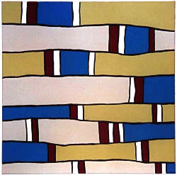 monocromatici; e le strisce pedonali non sono che segmenti paralleli coperti fluidamente da diverse tinte dalle sfumature accese e perfettamente abbinate. Ogni elemento è ridotto alle sue linee essenziali. Emanuele Gabellini non cerca neppure la perfezione compassata nella geometria delle forme. Osa le tinte più audaci, le gradazioni più squillanti immergendole, l’una accanto all’altra, con un gusto che incontra ogni preziosa armonia, senza mai rischiare la monotonia anche nella reiterazione dei soggetti. Il colore è piatto, privo di quella profondità che l’artista stesso non vuole esplicitamente esprimere e le sagome, racchiuse in uno spesso contorno nero, vengono così delimitate per lasciarle finalmente libere di essere quello che sono. Semplicemente.