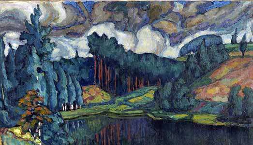 Konrad Mägi, attivo nel ventennio intorno alla prima guerra mondiale, non è un “pittore della vita moderna”, non è interessato all’utopia tecnologica, piuttosto vede nell’Arte una forma di felicità e pace, l’unica via di salvezza, che la vita piena di sofferenza non può portare e nella Natura un luogo sacrale intriso di forze misteriose.