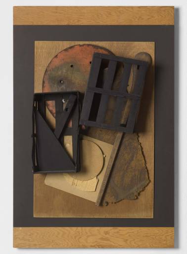 Più liberi da certi schemi narrativi, i quindici collage (datati fra il 1959 e il 1986) svelano la matrice picassiano-cubista, a partire dalla ridefinizione della tecnica stessa: zona di confine tra pittura e scultura. Ma anche, imprescindibile, la lezione del Dadaismo, del Surrealismo, della Metafisica.