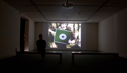 Anche in questo caso abbiamo un video di repertorio manipolato da Gregorio Samsa: il video dimostrativo, e divulgativo, di una nota casa produttrice di dischi americana, che nel 1957 documentava il processo di produzione dei vinili, possibile solo grazie alla co-operazione di diverse figure: dall’artista in sala di registrazione, fino al consumatore – in questo caso una borghesissima signora americana – attraverso una moltitudine di tecnici e operai. Il simbolo che in “Where is Abel?” caratterizzava la bandiera immaginaria dello Stato dell’Artista, diventa qui la copertina del vinile protagonista del video (tra molti altri vinili dalle copertine disegnate secondo il tipico stile di Gregorio Samsa). Vinile che, meraviglia, ritroviamo fisicamente esposto e sonante in mostra, su un vecchio grammofono, lo stesso utilizzato dalla signora nel video: più che sonante, silente, visto che suona il silenzio, diretto da un direttore d’orchestra, bravissimo artista ma senza orchestra, solo, i cui movimenti abbiamo anche visto nel video.