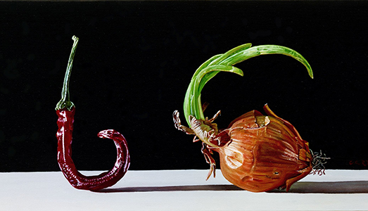 Quest’anno il connubio tra arte e cibo si rinnova inserendosi perfettamente nella cornice romana: sarà, infatti, possibile visitare la personale organizzata da Arte Contemporanea Italiana nella sede di Eataly a Ostiense. La novità di quest’anno? Un corso di cucina che ha trasformato la conferenza stampa in un viaggio introduttivo agli ingredienti delle opere di Carta, assaporandone direttamente gli aromi e i sapori attraverso la preparazione di un piatto ideato ad hoc dallo chef Alessandra Mariani: “Gnocchetti sardi con cipolle stufate, capperi e polvere di mandorle”. Le cipolle, dunque, tra i primi soggetti di quei dipinti di Giuseppe Carta che possono essere considerate veri e propri ritratti più che nature morte, diventano protagoniste, questa volta, di una vera ricetta preparata dai partecipanti in compagnia dello stesso artista. D’altronde, conoscere e far conoscere i frutti della terra in tutti i loro aspetti è da sempre la missione dell’arte di Carta, così profondamente legato alle sue origini, ai frutteti che cura con dedizione e a quei tesori della terra sarda da cui trae ispirazione.