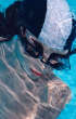 A dispetto di tutto ciò la messinscena della Di Marco non è immediatamente evidente. I cromatismi cobalto delle foto subacquee, i riflessi luminescenti degli scatti a pelo d’acqua distolgono la percezione del particolare e mostrano, a prima vista, convenzionali dinamiche di nuotatori palestrati e bagnanti-vamp dalle chiome platino. Soltanto avvicinandosi si viene disturbati da visi troppo perfetti, occhi inespressivi, labbra eburnee, braccia categoricamente amputate!