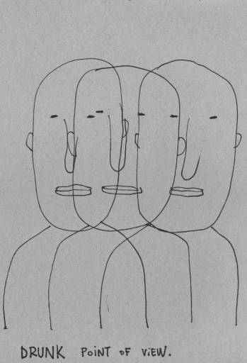 L’universo raparelliano ritorna all’ordine sulle mensole che sorreggono teorie di fogli in cui si palesa tutta l’abilità dell’artista nel saper vedere, assimilare, riprodurre alla perfezione col proprio stile fumettistico l’intera struttura sociale, peraltro senza mai incappare nel rischio di annacquare il messaggio di fondo: il mondo dell’arte esce allo scoperto quale patria di artisti, curatori, collezionisti, tutti iconograficamente ben definiti da precise caratteristiche che volendo si può imparare a riconoscere nelle due tavole-quiz esposte (ovviamente, come nelle migliori riviste di enigmistica, c’è anche la soluzione capovolta a fondo pagina); vere e proprie scenette danno spazio a lezioni di un bon ton grottescamente divertente tanto per com’è figurato, quanto per il suo essere iper-standardizzato (ricordate: a tavola non si mettono le mani in bocca e mai regalare crisantemi, sono solo per i funerali!). Isolato nell’angolo, un tavolo – altra parte del site-specific – pullula di oggetti, progetti, ulteriori fogli (alcuni bianchi per idee in divenire) e taccuini: il tavolo in sé non spicca particolarmente, e più che all’opera unica delle intenzioni l’insieme finisce per rimandare ad un semplice condensato-riassunto di poetica e metodiche, sintesi artistica attraente più nei singoli pezzi che nella visione complessiva.