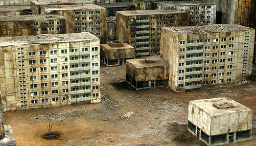 I curatori della mostra hanno accostato i due artisti, così distanti per formazione ed intenti, avendo colto, probabilmente, tra i rispettivi lavori, il passaggio di una pallida affinità ideativa. Più emozionale e partecipata la visione del fotografo italiano giocata sui toni della memoria e della nostalgia; più algida e preoccupata del dettaglio l’attenzione estetica dello street artist tedesco mirante, ci sembra, a tentare un sia pur lieve contatto con una dimensione urbana avvertita come aliena e straniante. Percorriamo in lungo ed in largo la galleria, mirando e rimirando l’esposizione con alterna simpatia ma, inevitabilmente, se solleviamo appena lo sguardo e lo lasciamo, distrattamente, correre liberamente d’intorno, ci assale l’impressione che, la disposizione contestuale delle opere – nonostante più d’una ci appaia meritevole di una più vigile attenzione – rappresenti (lo scriviamo con ambascia) una sorta di intralcio al godimento estetico di quelle splendide sale.