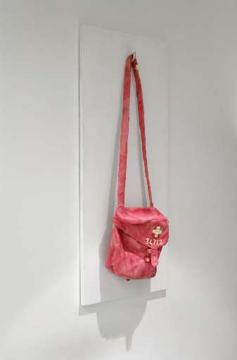 Uno spazio che sembra espanso. E un’installazione che si snoda lungo tutte le pareti. Bandiere e chewing-gum rosa sono l’inconfondibile sigla dell’artista...