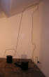 Magnus Thierfelder -invece- propone un intervento acustico facendo riecheggiare un suono per la galleria; i cavi delle casse vengono usati come una sorta di traccia per delineare un circuito informe nello spazio.