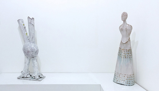 La mostra romana curiosamente intitolata “Trappolando”, già presentata pochi mesi fa a Milano nella Galleria Montrasio, si sofferma sulla sua produzione plastica e, segnatamente, sulla ceramica. Apprendiamo dal pregiato catalogo che l’artista trentino, in una lettera alla moglie, definì, enigmaticamente, la lavorazione della creta come un trappolare, forse per celia o forse per intimo sentire. Spigolando tra i suoi scritti troviamo – ci sembra- un piccolo indizio: la questione dell’opera d’arte, della sua vita…gli ultimi quartetti di Beethoven sono belli anche quando nessuno li suona…così la Venere di Milo sepolta e ignota e così addirittura le opere ignote e forse distrutte di Apelle, perché le opere d’arte sono spiriti. Apprendiamo che l’antica pratica della ceramica, figlia del fuoco e della creta, luogo di incontro e di dialogo tra i valori plastici ed i valori pittorici, è stata presente fin dai primi anni trenta nel percorso espressivo melottiano influenzato ab ovo dall’alunnato all’Accademia di Brera – assieme a Lucio Fontana che diventerà suo grande amico – presso lo scultore simbolista Adolfo Wildt che invitava a prestare attenzione soprattutto al momento ideativo intellettuale della creazione artistica; e dalla perentoria lezione boccioniana del Manifesto tecnico della scultura futurista dove si legge che la composizione scultorea deve sostanziarsi di elementi matematici e geometrici. Così i vasi teriomorfi, le eleganti korai, figure femminili oblunghe dal profilo rastremato, ma anche le essenziali sculture lineari in ottone rivelano al riguardante attento la nativa geometria che li sottende.