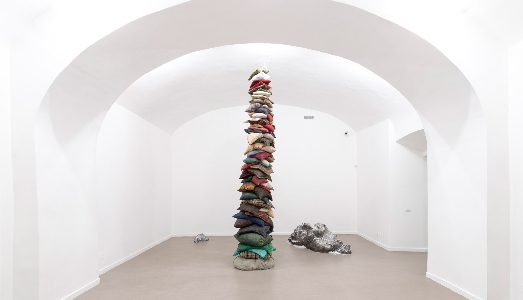 Zhang Enli, Tower 2, 2018, 328 scatole di cartone dipinte con colori acrilici, 185x185cm h525cm, Galleria Borghese
