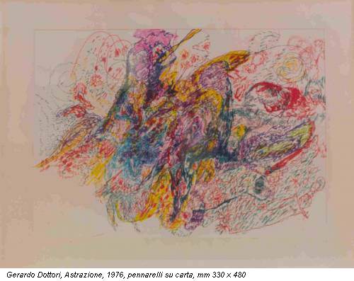 In seguito alla nomina a direttore dell’Accademia di Belle Arti di Perugia, Dottori è costretto a limitare i propri spostamenti, stabilendosi dal 1940 nella città natale, dove vive una condizione d’isolamento territoriale, continuando però incessantemente a dipingere e a esporre. Sebbene costantemente attento a temi moderni e tecnologici, l’ispirazione artistica di Dottori rimarrà sempre legata all’Umbria, terra natìa, il cui paesaggio distorto dall’altitudine sarà il soggetto prediletto delle sue vedute aeree. Dipinge fino all’ultimo giorno di una vita longeva, realizzando negli ultimi tempi anche una serie astratta, di cui valido esempio è l’opera Astrazione del 1976 ammirabile in mostra.