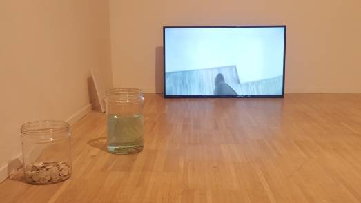 No Leaders Please è l’opera realizzata da Thomas Merle incentrata, invece, sul concetto di distruzione, scomparsa, estinzione, passaggio e di instabilità del tempo. Il risultato, quanto mai efficace, è un progetto visuale che rivela familiarità con l’assenza e lo scorrere implacabile di un tempo che annienta, sfalda e dissolve, secondo logiche naturali o meno, comuni a qualunque organismo. Si tratta di un video documentativo di una performance accompagnato da un opuscolo: il processo preliminare ha visto la realizzazione di 6.702 palline di gesso, che l’artista stesso ha poi provveduto a frantumare. Accanto al video, Merle ha posizionato in galleria un’altra opera site specific: due barattoli di vetro, il primo contenente monete di gesso da lui plasmate con sopra incisa la lettera I (che, oltre a richiamare il pronome personale inglese, fa riferimento alla lettera yod, ovvero “mano” nell’alfabeto fenicio), e l’altro con una soluzione chimica all’interno. Il liquido contenuto in quest’ultimo barattolo porta alla graduale dissoluzione degli oggetti in questione e ciascuno dei visitatori può scegliere se passare o meno le monete dall’uno all’altro contenitore, determinandone così la permanenza o la distruzione. Sostituendosi, anche se solo per un momento, alla Natura. O a Dio. O, forse, all’incalzante upgrade tecnologico.