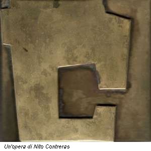 Ci si sposta di un paio di metri appena e, nella saletta dedicata a Nito Contreras, lo sguardo è subito catturato da entità materiali, al contempo stranianti e familiari. A un bolide in alluminio, appoggiato a terra come una stele primitiva, si accompagna ora un disegno misteriosamente minimo, ora una serie di quadri scultorei dove la calda lucidità del rame si piega in angoli e rientranze, viene scandita da tagli e fori. Sono –per usare la definizione dell’artista– forme geometriche emergenti dalla planimetria della metropoli, estrusioni dalla cartografia ufficiale che Contreras percorre fisicamente a piedi ricreandola con imprevedibile individualità, attraversa nel suo andare cittadino seguendo le linee di un personalissimo piano regolatore, sulle orme degli psicogeografi che furono tra i fermenti più potenti dell’esaltante stagione situazionista. Luther Blissett ha dedicato pagine entuasiaste alla strategia di riappropriazione dello spazio cittadino che da anni Contreras conduce, e merita pure considerare come si stia riaffermando nella città un interesse nei confronti di ricerche in tale direzione (si pensi, ad esempio, all’importante esperienza del gruppo Stalker).