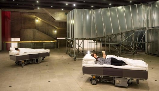 Due letti ambulanti nella galleria, in notturna. Ecco la nuova trovata...