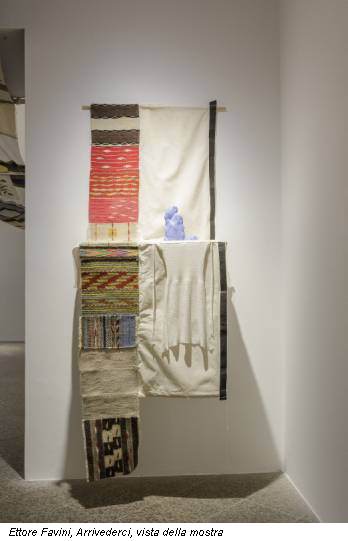 È innanzitutto la materia prima da cui si originano le opere di Favini ad avere in sé una traccia fisica della riflessione: da una parte per il modo in cui trama e ordito creano il tessuto grazie all’intreccio dei singoli elementi, dall’altra per le modalità attraverso cui le tradizioni di una comunità si sedimentano in un pattern decorativo o nella simbologia di un colore.