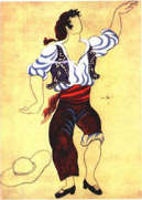 La sezione numero 5 è dedicata a Pablo Picasso e Joan Mirò, al primo artista appartengono i trentadue bozzetti dei costumi realizzati in collotype dipinti a mano, nel 1916/19, per l’opera il “Tricorno” di Sergej Diaghilev, autore dei Balletti Russi, che gli affidò scenografia, trucchi e costumi. L’opera andò in scena, per la prima volta, a Londra nel 1919. In esposizione anche cinque litografie del 1966, tra le quali “Mere et Enfant au fichu”, alcune ceramiche dipinte a mano e una scultura in bronzo del 1950, dal titolo “Visage d’homme barbu”.