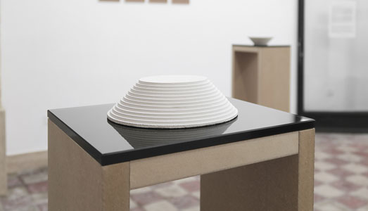 Lo sguardo di Munarriz è, però, anche rivolto al passato, ai teatri greci, antenati dei circuiti odierni e, nello specifico, all’anfiteatro romano di Cagliari, omaggiato dalle tre sculture in cemento bianco, con base di cristallo nero, Anfiteatro (nella foto in alto), realizzate dall’artista durante la sua permanenza nella città sarda.
