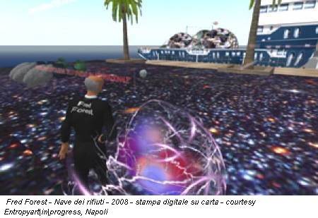 intelligentsia italiana, di risolvere l’“emergenza-rifiuti” in Campania. Il bizzarro e l’effimero delle passate azioni reali si potenziano e trovano prosecuzione nell’infinita potenzialità virtuale. Forest trova il modo di volatilizzare simbolicamente, nel