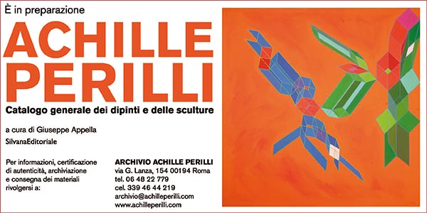 A questo primo imprescindibile nucleo, fa da supporto l’ordinamento di un lungo e fondamentale capitolo dedicato a Vita, opere e fortuna critica (dalla nascita a Roma nel 1927 al 31 dicembre 2018) che consente – attraverso un capillare lavoro di scavo nelle biblioteche specializzate e negli archivi pubblici e privati, nazionali ed esteri, e di ricognizione nelle gallerie divenute negli anni punto di riferimento dell’artista, nei musei, nelle più diverse istituzioni, presso i collezionisti e le case d’asta – di ricomporre le tante vicende che hanno visto Achille Perilli protagonista di disparate espressioni della cultura del suo tempo, e di rintracciare, oltre a mostre e voci bibliografiche inedite, opere disperse o dimenticate, di completare o parzialmente elencare i dipinti e le sculture presenti nelle mostre, di stabilire in molti casi i passaggi di collezione.