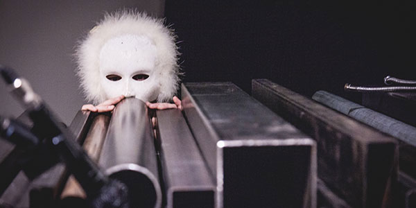 Immagine: Martina Brembati, Forme di un soffio (studio n1), in collaborazione con The Boys and Kifer. Foto della performance durante l’opening della mostra The great Learning, a cura di Marco Scotini, Triennale, Milano, 2017. Foto Davide Marchesi