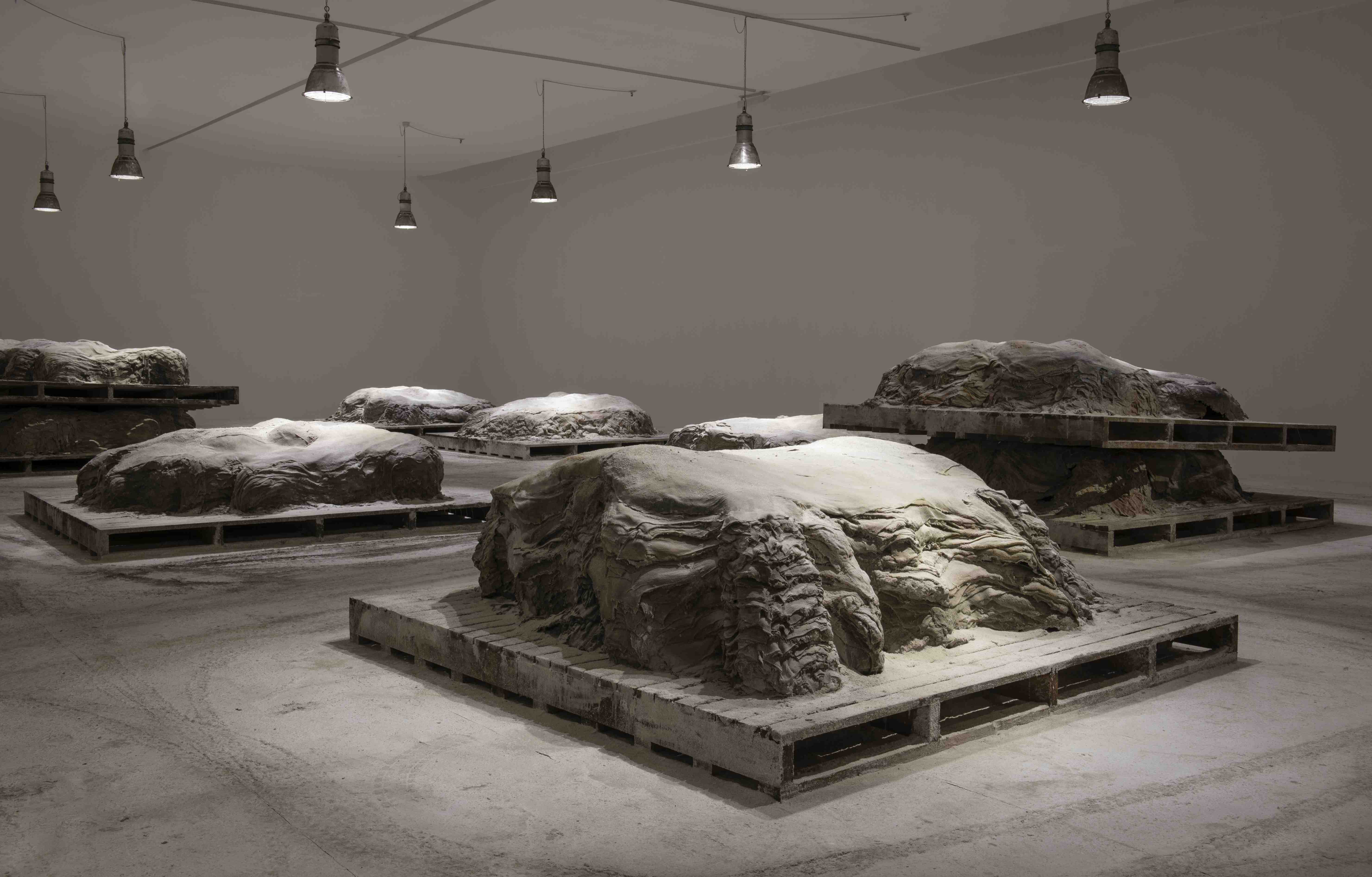 Su bancali grezzi, nell’arsura luminosa che porta il sale, è impossibile contare il numero di pelli, ammassate l’una sull’altra, stese, tirate. Un lager di pelli d’animale (vorrei dire corpi su corpi, ma non riesco) in cui ci si può camminare in mezzo, come si cammina per il mondo. Ma più ci cammini più ti immobilizzi. L’installazione produce silenzio: è tutto bianco, assiderato, anche le pareti.